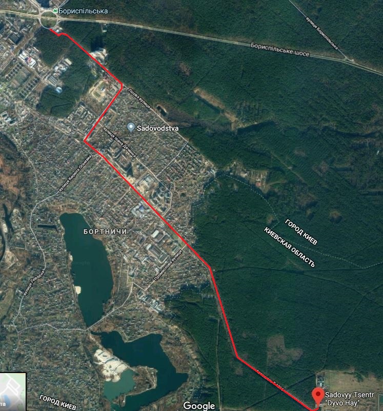 Якщо їхати громадським транспортом від станції метро Харківська – маршрут №753 та 324 до зупинки “Пилорама”.