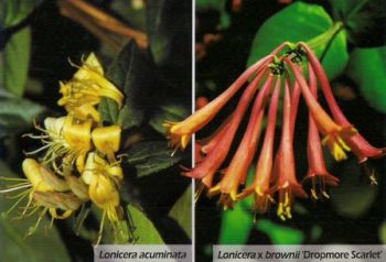 Lonicera x brownie ‘Drompore Scarlet’ Жимолость Брауна – зона 5В. Долго цветущая лиана с яркими цветами. Достигает 3 м (1-2 м в год). Цветы трубчатые, оранжево-красные, VI-X. Осенью красивы оранжевые плоды. Предпочитает почвы нейтральные, не сухие и не кислые. Рекомендуется высаживать у заборов и опор.