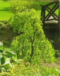Дерево оригинальной формы. Дорастает до 5 м выс. и 4 м шир. Листья округлые, светло-зеленые, весной красно-бурые, осенью желтые или красные. Побеги тонкие, свисающие до самой земли, придавая растению «плакучую» форму. Хорошо растет на влажной свежей почве. Для посадки на видных местах. Особенно декоративно осенью.