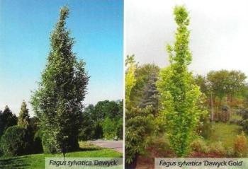 Fagus sylvatica`Dawyck` Бук лесной – зона 5В. Большое дерево с узкой, колоновидной или конической кроной. Достигает 15 м выс. при шир. 3 м. Листья зелёные, блестящие, осенью жёлтые или красно-коричневые. Место защищенное. Предпочитает плодородные, свежие почвы с постоянным уровнем грунтовых вод. Рекомендуется для посадки в парках и больших садах в виде солитеров или кулисных растений.