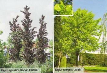 Fagus sylvatica`Zlatia` Бук лесной – зона 6А. Дерево с широкой округлой кроной. В открытом пространстве достигает 25 м выс. и шир. Кора пепельно-серая, гладкая. Молодые листья весной золотисто-жёлтые, потом становятся зелёными. Предпочитает плодородные свежие почвы, с постоянным уровнем грунтовых вод, защищенные места. Интересный «весенний» контрастный элемент, особенно в композиции с другими растениями. Рекомендуется для больших садов и парков.