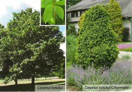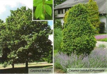 Carpinus betulus `Columnaris` Граб обыкновенный – зона 5А. Медленно растущее, плотное дерево, с правильной колоновидной, а позднее яйцевидной формой кроны. Достигает 10 м выс. Листья светло-зелёного цвета, осенью жёлтые. Предпочитает свежие плодородные почвы, нейтральные или щелочные. Одна из самых красивых геометрических форм деревьев. Хорошо подходит для малых садов.