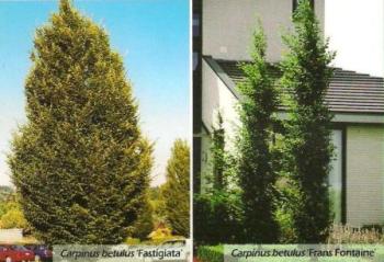 Carpinus betulus `Frans Fontain` Граб обыкновенный – зона 5А. Дерево с сильным ростом и сомкнутой компактной, цилиндрической кроной. При выс. 10 м, достигает 3 м в шир. Листья светло-зелёные, осенью приобретают жёлтую окраску. Предпочитает плодородные нейтральные или щелочные почвы. Применяется для посадки вдоль узких улиц, образования шпалер, как ветрозащитное растение, для солитерной посадки или в группах.