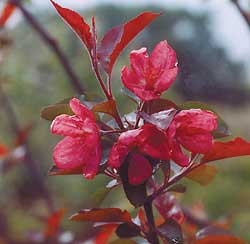 Malus (яблоня райская) ‘Недзвецкого’ зона 3. Представляет собой одно из самых красивых плодовых деревьев, кроме того, довольно неприхотлива и морозоустойчива. Деревце небольшое , 6-8 м. высотой, с гладкими ветвями без колючек, молодые побеги имеют темно-пурпурный цвет. Листья в период распускания также пурпурные. Когда яблоня приобретает обильную крону интенсивно окрашенными остаются