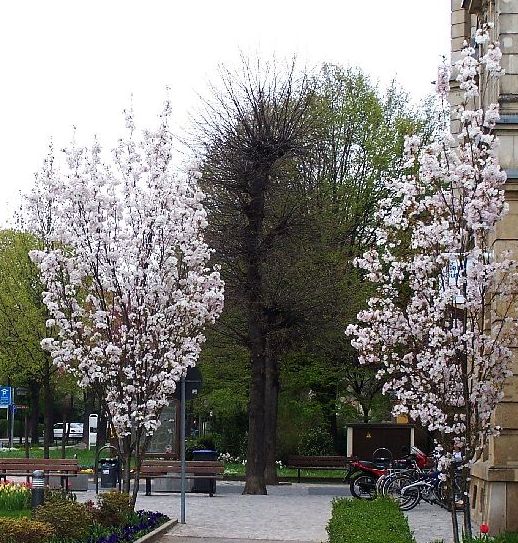 Prunus serrulata (черёмуха мелкопильчатая (сакура)) `Kanzan` зона 6В. Небольшое дерево, с обратноконической кроной, до 10 м выс. и 5-8 м в диам. Чаще выращивают в штамбовой форме. Листья эллиптические, блестящие,