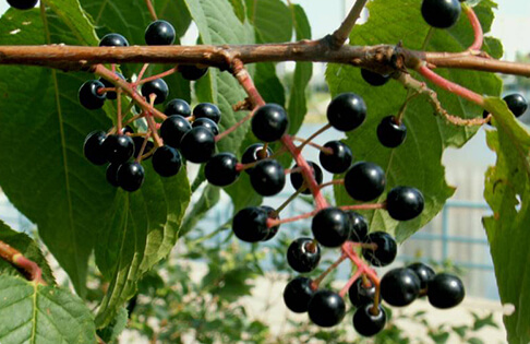 Prunus serotina (черёмуха поздняя) зона 4. Листопадное дерево высотой 18-27 м, с правильной овальной густой кроной, быстрорастущее. Ствол длинный, прямой. Кора молодых деревьев гладкая, с многочисленными короткими, узкими, горизонтально направленными чечевичками. С возрастом кора становится очень тёмной, почти чёрной. Ветки свисающие, тонкие, красновато-коричневые, иногда покрыты серым эпидермисом, имеют отчётливый горький запах и вкус миндаля. Листья очередные, простые, 6-14 см длиной, овальные либо ланцетовидные, на краях мелкозубчатые.