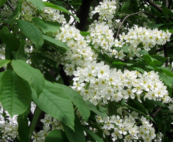 Prúnus pádus (черёмуха обыкновенная) зона 4 .Дерево или кустарник высотой 8-12 м. кора черно-серая, гладкая. Молодые побеги красновато-коричневые, с хорошо заметными чечевичками и с запахом горького миндаля, ветви