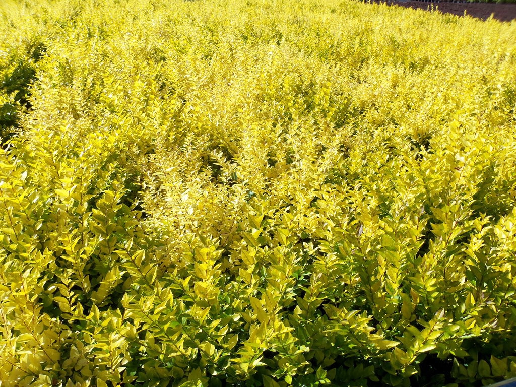 Ligustrum (бирючина гибридная) ‘Vicaryi’ зона 6А. Прямо растущий кустарник с цветными листьями. Выс. до 3 м. Блестящие жёлтые листья в мягкие зимы остаются на ветвях. Кремово-белые цветки собраны в ароматные соцветия-пучки и плодоносят, VI-VII. Неприхотлив, хорошо растёт на почвах с большим содержанием извести. Плохо переносит низкие температуры, Должен расти в тёплом и защищенном месте. Легко переносит сильную обрезку.