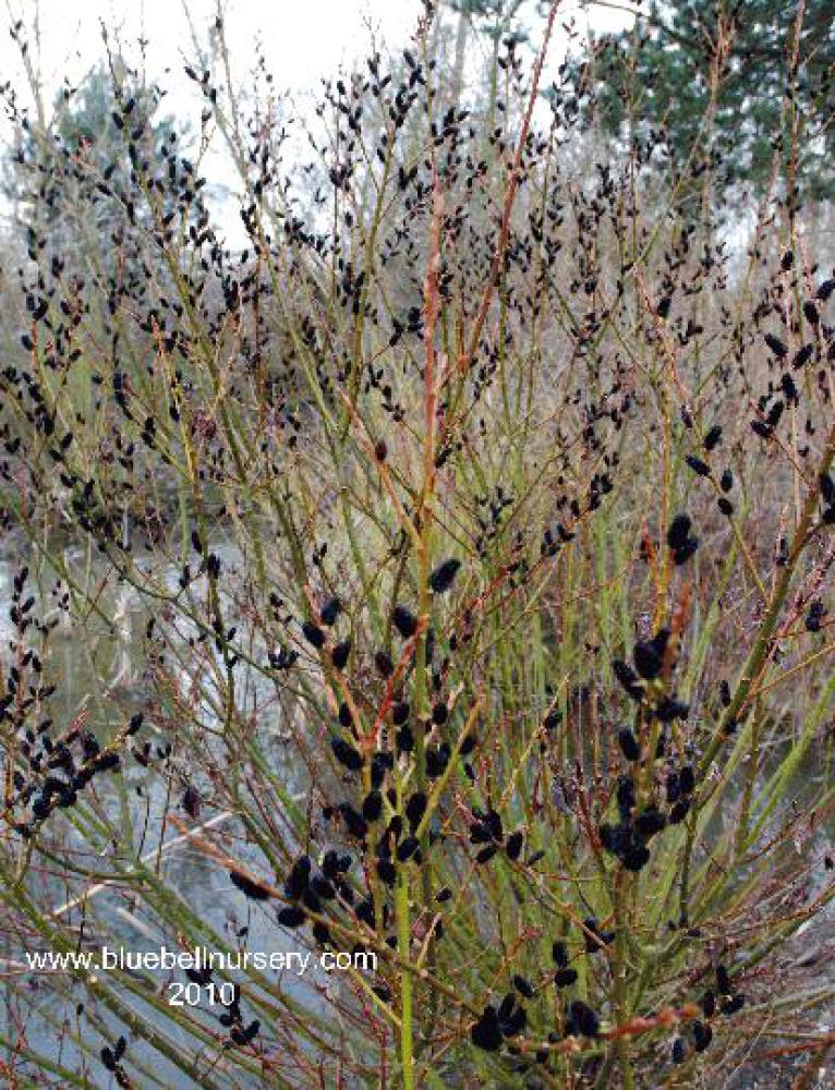 Salix purpurea (ива пурпурная) ‘Pendula’ зона 5А. Густой кустарник с очень тонкими дугообразными побегами, часто прививаемый на штамбе и образующий зонтичную крону. Блестящая кора красно-коричневого цвета. Листья светло-зелёные, снизу серебристо-серые. Живописное растение для посадки в солнечном, влажном месте, например, на берегу водоёма.