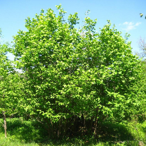 Corylus avellana (лещина обыкновенная или зелёная, фундук) зона 5А. Это высокий кустарник. Коричневые ветви растения имеют на своей поверхности белые чечевички. Почки у лещины округлой формы, немного сжатые со всех боков. Листья сидят на коротких черешках, форма их похожа на яйцо. У листьев имеется острие, а их края зубчатые. Тычиночные цветки растения расположены в сережках, а вот пестичные находятся в цветочных почках. Плод лещины – орех буровато-желтого окраса, который находится в плюске зеленого цвета. Этот кустарник – долгожитель, он может прожить около 80 лет. В апреле начинается цветение лещины, уже после которого начинают распускаться листья. Созревание плодов происходит в конце лета. Этот кустарник предпочитает плодородные почвы, смешанные леса, опушки и овраги. Не способна перенести песчаные почвы и заболачивания. Для этого кустарника необходим слой дренажа. Лещина устойчива к ветрам и тени, однако при наличии холодных ветров и тени растение даст малый урожай.