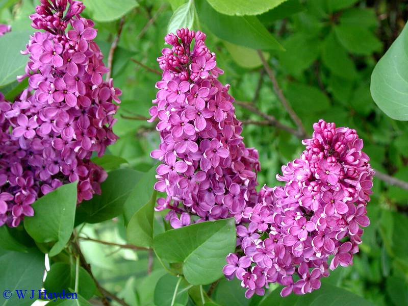 Syringa vulgaris (сирень обыкновенная) зона 4. Крупный кустарник с многочисленными корневыми отпрысками, образующими заросли. Вырастает до 4 м выс. Листья серцевидные, ярко-зелёные. Цветки лиловые, собраны в метёлки, с сильным ароматом, в V. Адаптируется к различным почвенным условиям, хорошо переносит засуху и городскую среду. Отличное растение для парков и жилых районов.