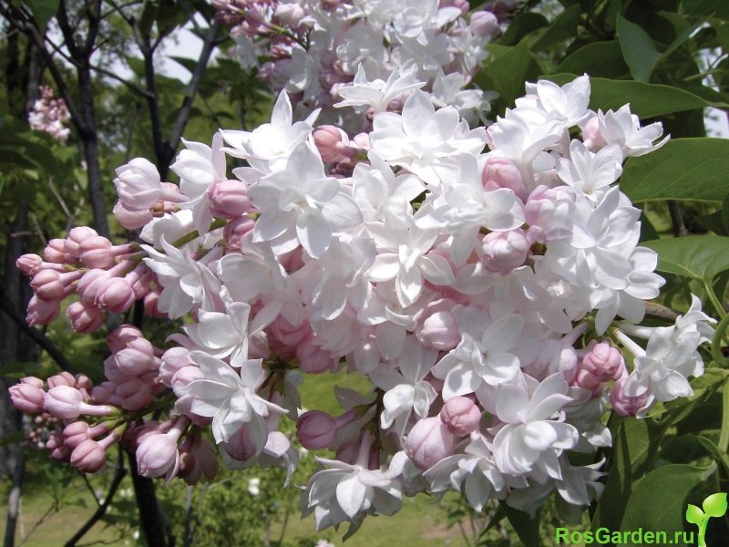 Syringa vulgaris (сирень обыкновенная) ‘Mme Lemoine’ зона 4. Сильнорослый кустарник или небольшое деревце выс. до 4 м. Листья сердцевидные, ярко-зелёные. Цветки крупные, махровые, чисто-белые с широкими лепестками, собраны в густые пирамидальные соцветия, V—VI. Цветёт поздно и очень обильно. Один из самых ценных сортов с белыми цветками. Для приусадебных участков.