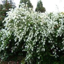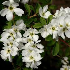 Exochorda racemosa (экзохорда крупноцветковая или кистистая) зона 5А. Большой кустарник с прямыми главными ветвями, а боковыми – раскидистыми. Достигает 3-4 м. в высоту. Эффектные соцветия – собранные вместе одиночные цветы чисто белого цвета. Цветёт в мае. Нуждается в богатой почве, содержащей влагу. Не переносит извести. Рекомендуется для больших участков.
