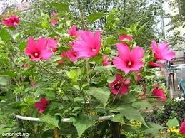 окраски образуют большую и широкую воронку (до 17 см в диаметре). Кусты розовоцветных гибискусов вырастают максимум до 2 м в высоту. Листья у них заостренные и разделенные на три лопасти. Цветки насыщенно-розового цвета широко раскрываются (в диаметре до 23 см), но прочно держат форму. У гибискусов со светло-розовыми цветами тоже образуется двухметровый куст. Его листья очень похожи на листья розовоцветных гибискусов, но цветки больше (в диаметре до 27 см!) и распускаются раньше. К сожалению, их форма не такая прочная и страдает от ветра.