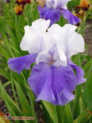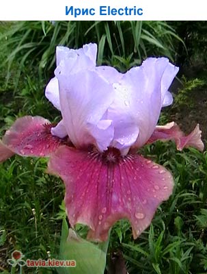 Ирис бородатый `Electric` обладает небольшим цветком, окраска различна, верхушка белая, низ сиреневый. Лепестки ириса бородатого “Электрик” ровные, цветение обильное и длительное в мае.