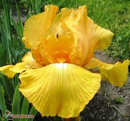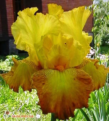 Ирис бородатый `Gold Lindor` обладает крупным цветком, окраска ярко желтая. Лепестки ириса бородатого “Голд Линдор” кружевные, цветение обильное и длительное в мае.