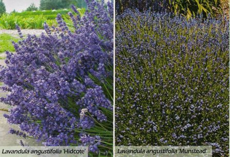 Lavandula angustifolia (лаванда узколистная) ‘Hidcote’ зона 6В. Вечнозеленый, низкий кустарник с.ароматными листьями и цветами. Выс. ок. 0,4 м. Листья ланцетные, серые. Цветки особенно крупные, яркие, голубовато-фиолетовые, в густых соцветиях, цветут все лето. Растет хорошо на легкой сухой и теплой почве. Хороша для альпийских горок, солнечных цветников и низких бордюров. Чувствительна к морозам, рекомендовано укрытие.