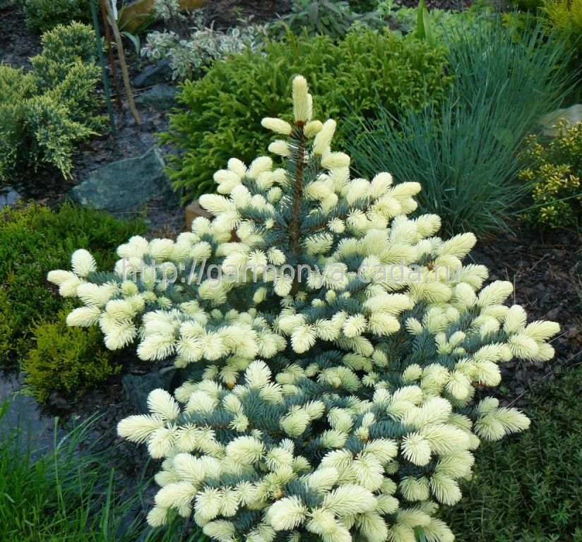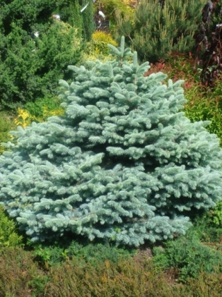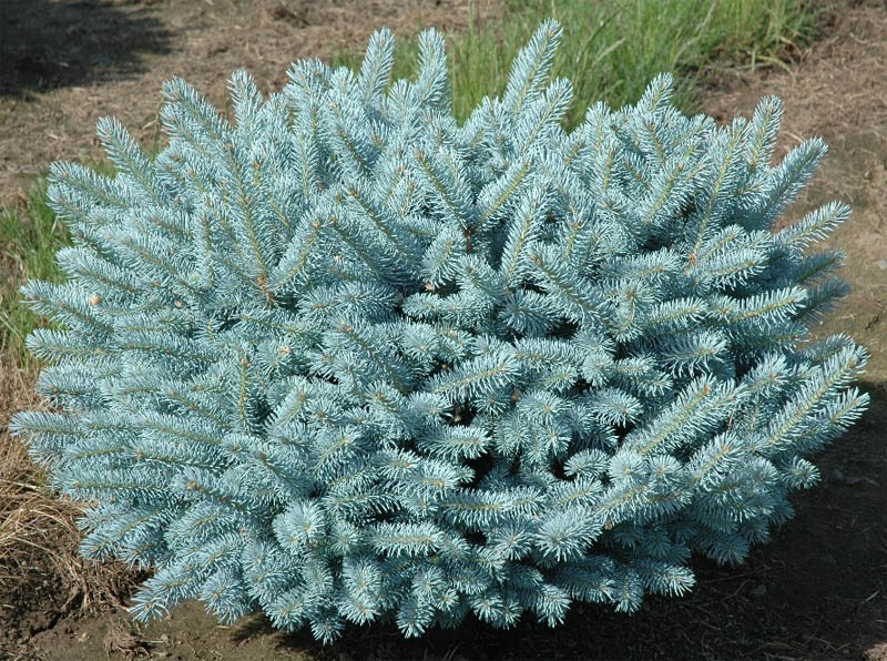 Ялина колюча (Picea pungens) ‘Glauca Globosa’ зона 4. Карликова ширококонічна форма ялинки, протягом кількох років напівкуляста і без чіткого стовбура, але у віці 10 років досягає понад 3 м у висоту. Пагони короткі, жорсткі: хвоя сріблясто-блакитна, колюча. Найчастіше зустрічається в щепленому вигляді, внаслідок чого має подушкоподібну форму. Вимоги до ґрунту та вологи дуже невисокі. Рекомендується для маленьких присадибних та кам’янистих садів.