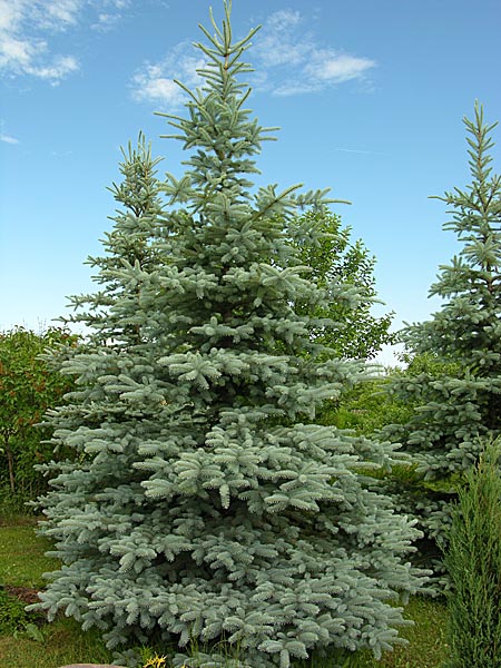 Ялина колюча (Picea pungens) ‘Hoopsii’ зона 4. Один із найкращих деревних різновидів колючої ялини, з характерним правильним габітусом і прекрасним сріблясто-блакитним забарвленням хвої. У віці 30 років вона сягає 10 м у висоту. У неї дуже невисокі вимоги до умов вирощування та чудово росте у міських умовах. Рекомендується для поодиноких, солітерних посадок.