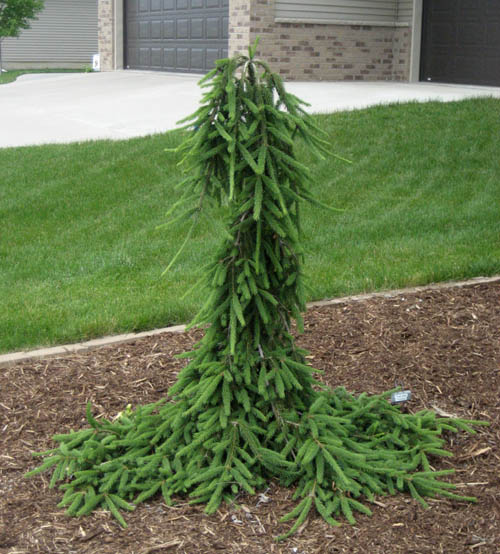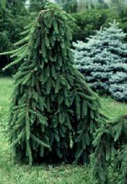Ялина звичайна (Pіcea abіes) ‘Inversa’ зона 4. Плакуча, повільно зростаюча різновид ялини, зростання якої залежить від висоти щеплення або способу підв’язки, Всі пагони звисають, відсутній лідируючий пагін. Хвоя зелена. Вимоги до ґрунту та вологи середні. Рекомендується для малих садів, одиночної посадки на видному місці.