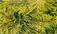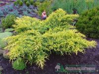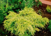 Ялівець середній (Juniperus х pfitzeriana (х media)) ‘Old Gold’ зона 5A. Розлогий невисокий чагарник, що повільно росте. У віці 10 років сягає 0,4 м у висоту при діаметрі 1 м. Хвоя має форму голок та луски з яскравим золотисто-жовтим забарвленням. Вимоги до ґрунту та вологи невисокі. Рекомендується для малих та кам’янистих садів.