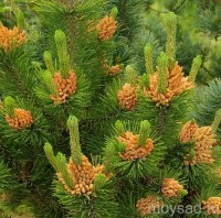Pinus mugo (сосна горная) ‘Pal Maleter’ зона 4. Интересный сорт кустистой формы, медленно растущий, в возрасте 10 лет достигает 1,2 м выс. Характерной чертой является бело-кремовая окраска молодой хвои, которая со временем зеленеет. Растения изначально ажурные, со временем густеют. Не требователен. Рекомендуется для альпийских горок и приусадебных садиков, на видных местах.