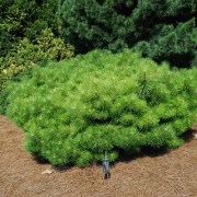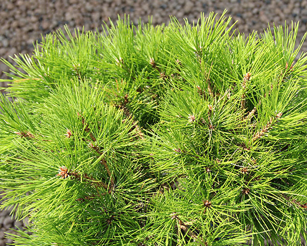 Pinus densiflora (сосна густоцветковая) ‘Jane Kluis’ зона 6А. Карликовый сорт округлой формы. В возрасте 10 лет достигает ок. 0,6 м выс. Побеги твердые, приподняты. Иглы светло-зеленые, собраны по две. К почвам и влажности не требователен. Для альпийских горок и вересковых садиков.